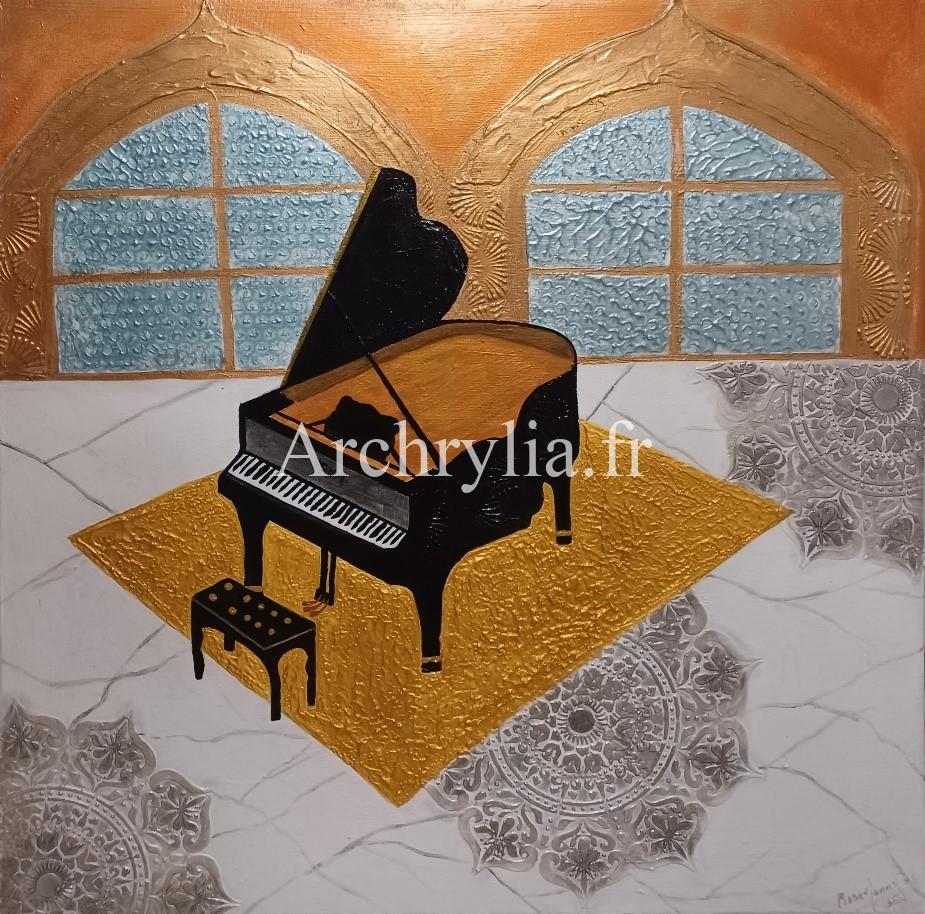 Ici, l’esthétique d’un piano à queue se suffit à elle-même. De nombreux reliefs enduit de plâtre subliment cette œuvre.
